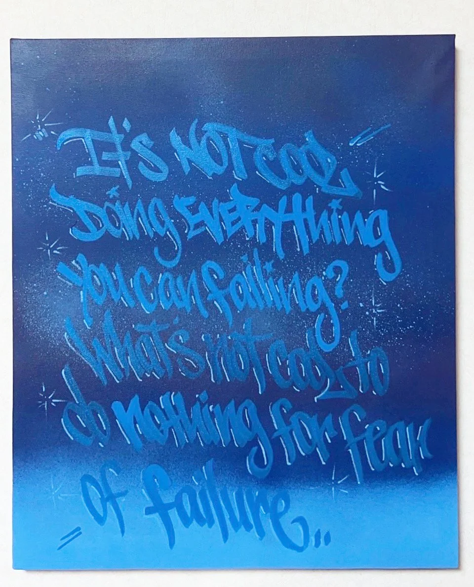 When playing a sport quotes for inspiration are always great . Here was a custom canvas done for a client named Ao ( blue ) so I decided to the entire piece in shades of blue