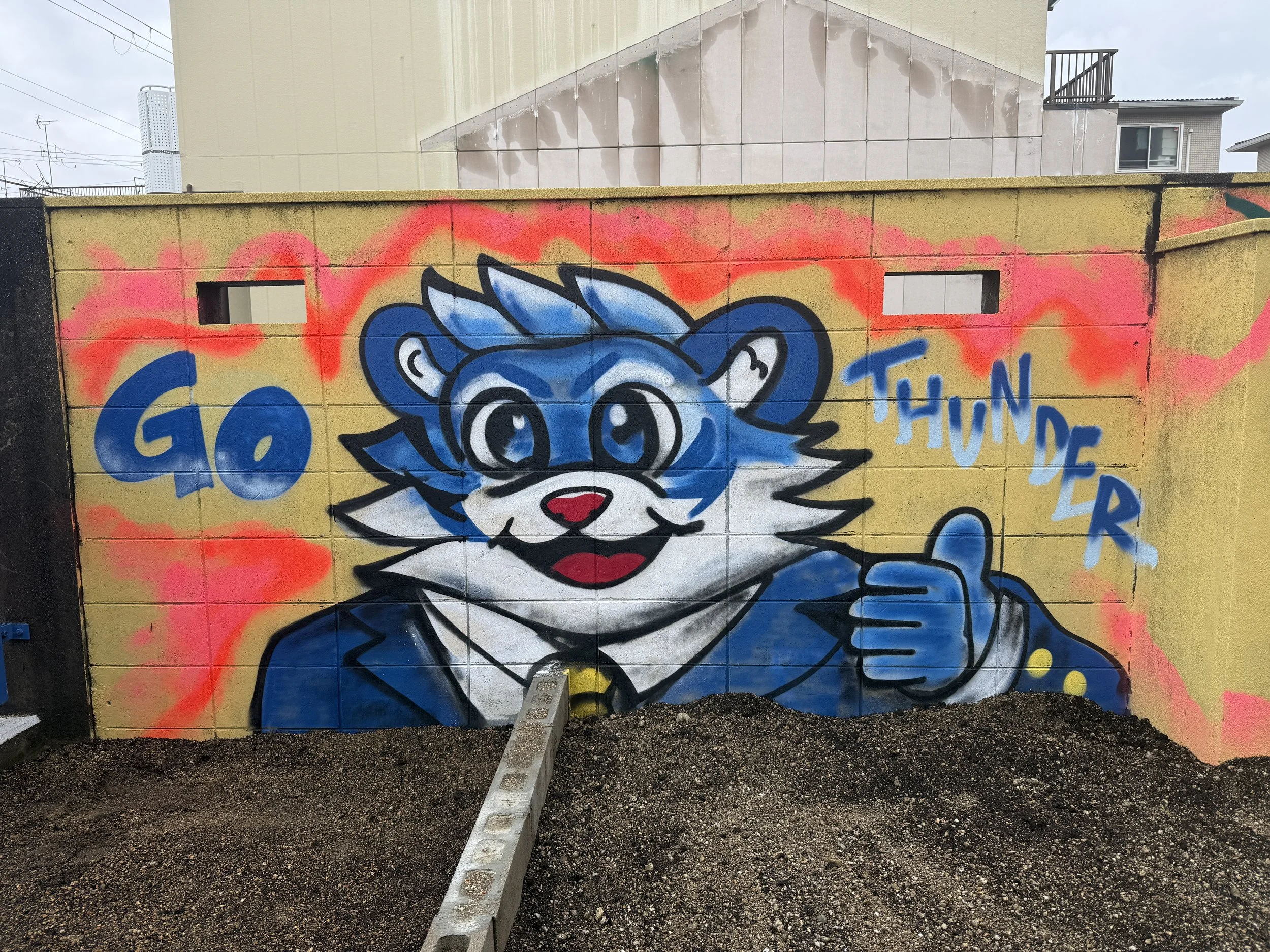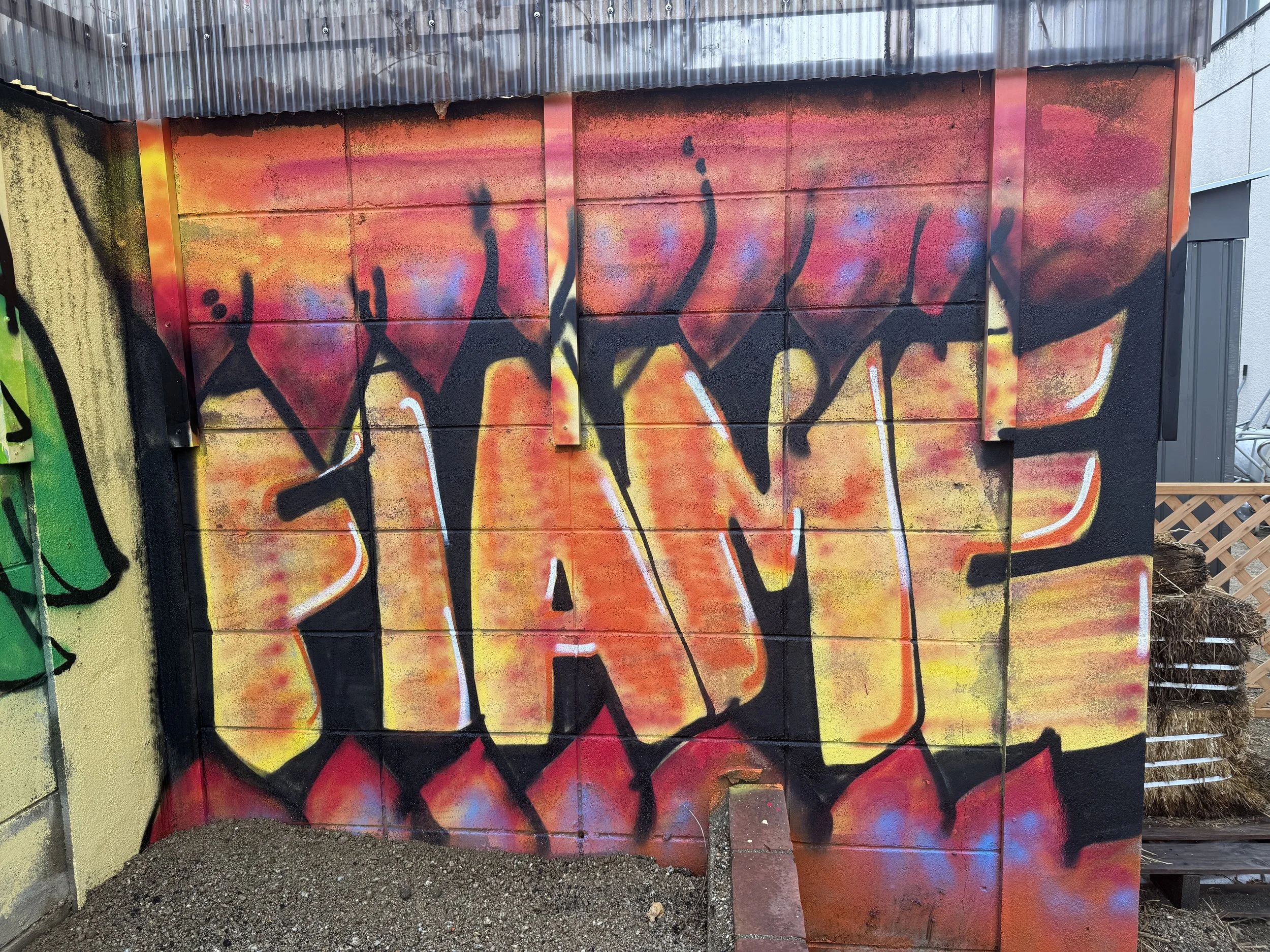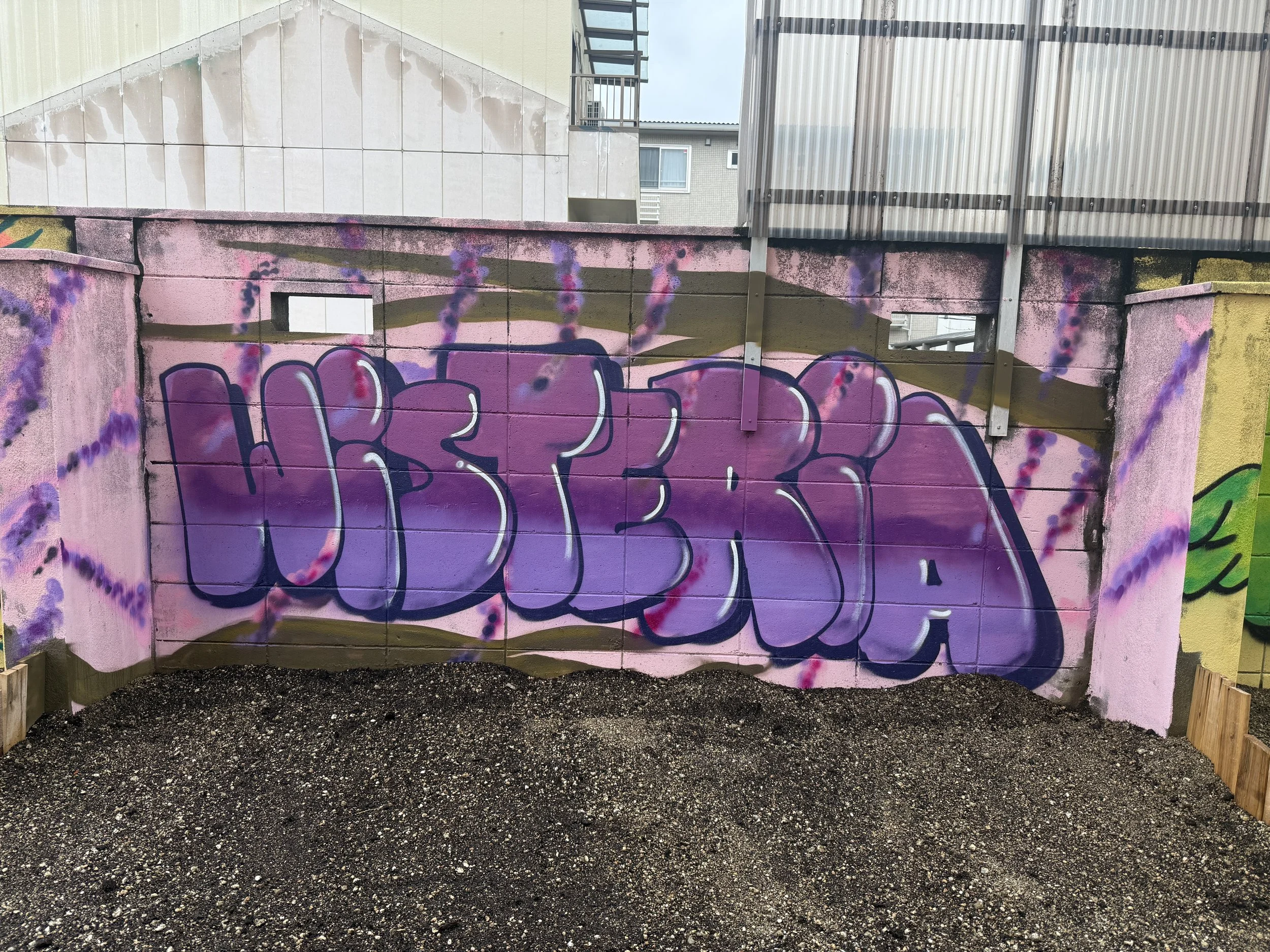Working primarily with spray paint and house paint, I focused on layering color, movement, and contrast to give the space a sense of rhythm and life. The result is a vibrant environment that not only reflects the school’s identity but also invites students to engage with the space in a more dynamic and creative way.
